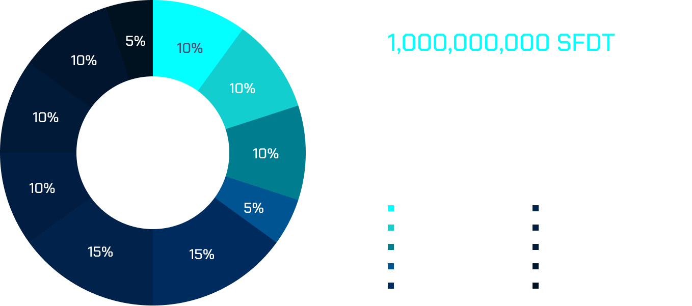 Team and Advisors: 15% (150 million SFDT)